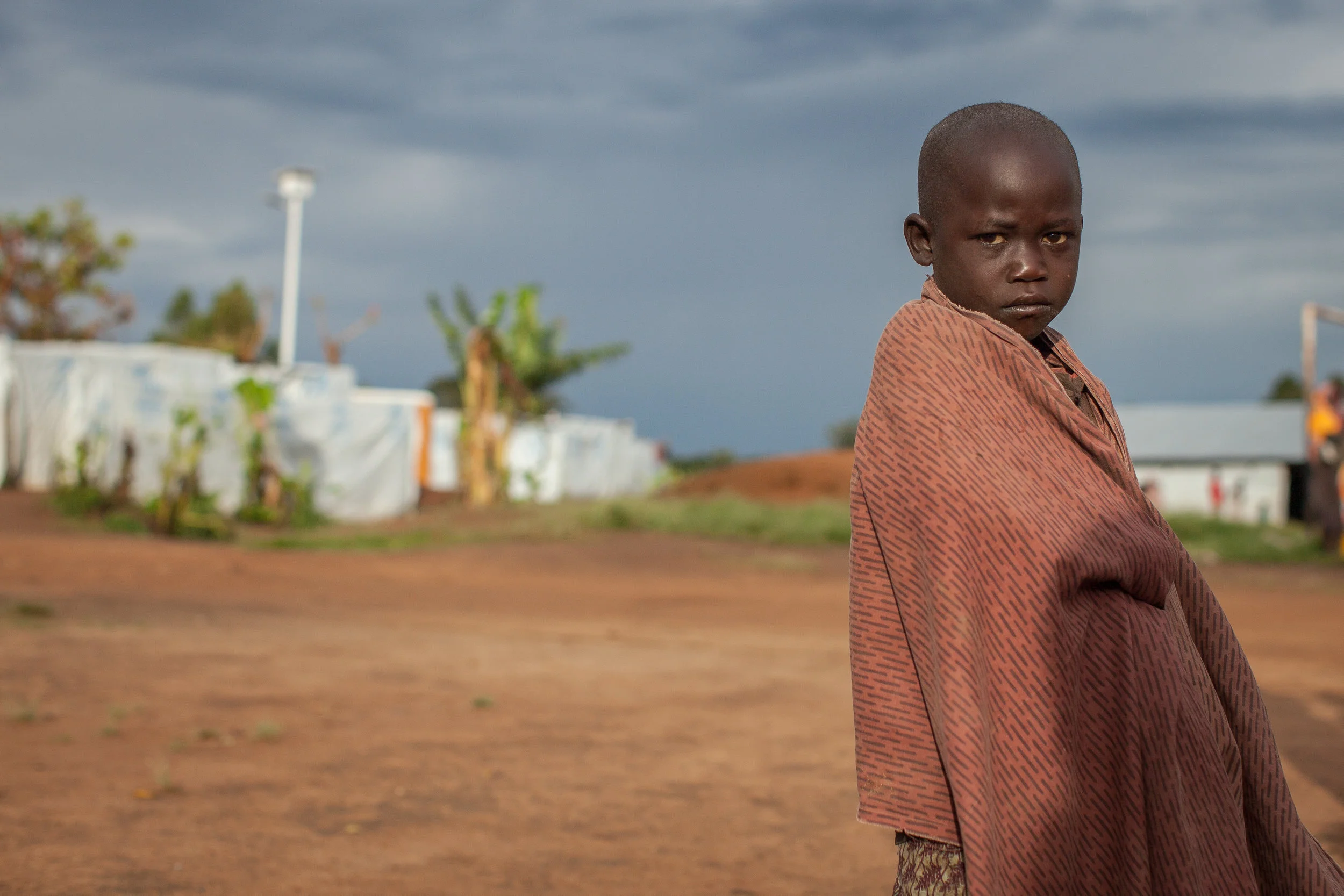 May 2017—A young girl covers herself in a blanket at a Registration Center run by the Office of the Prime Minister and UNHCR in northern Uganda. After South Sudanese refugees cross the border, they are transported here to be registered with the government, and then taken to a settlement where they will build their new home. Refugees are only supposed to be at the registration center for 24-hours, however, the large influx Uganda is receiving (1,000 – 2,000 per day) has led to a wait time of up to five days.