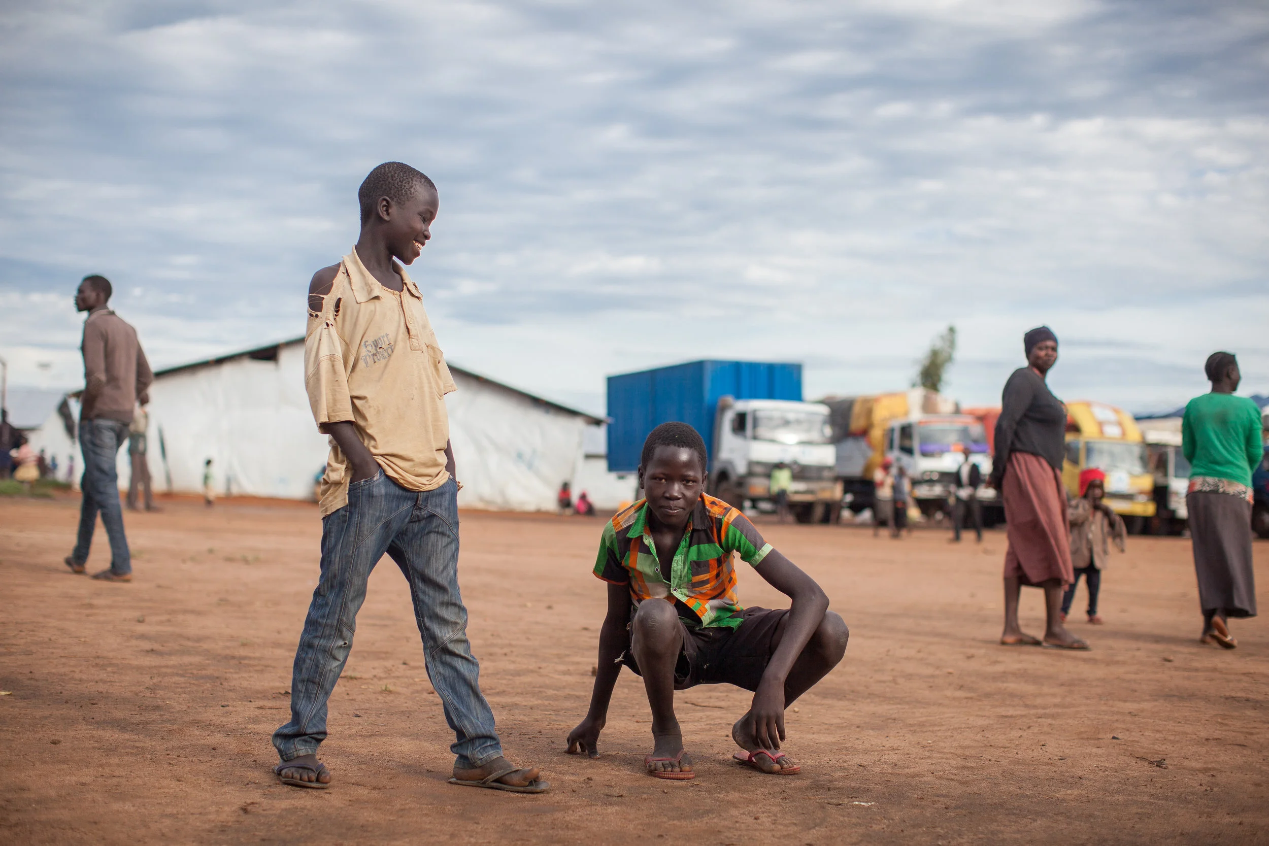 May 2017—A boy crouches on the ground at a Registration Center run by the Office of the Prime Minister and UNHCR in northern Uganda. After South Sudanese refugees cross the border, they are transported here to be registered with the government, and then taken to a settlement where they will build their new home. Refugees are only supposed to be at the registration center for 24-hours, however, the large influx Uganda is receiving (1,000 – 2,000 per day) has led to a wait time of up to five days.
