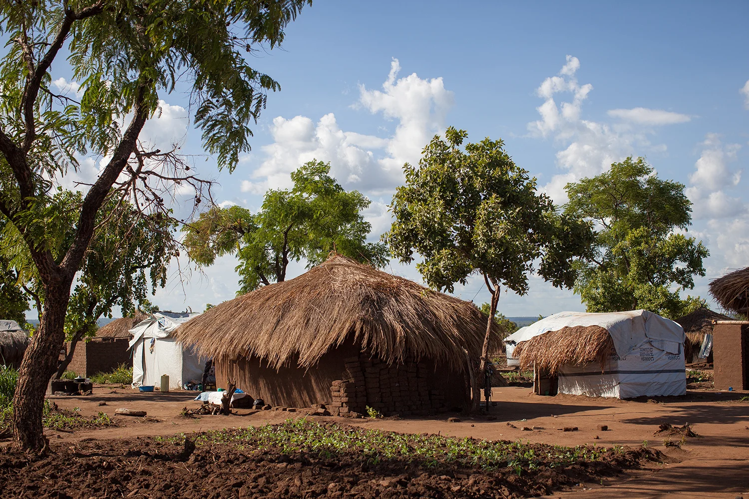 May 2017—A mud hut at Bidibidi Refugee Settlement in northern Uganda. Opened in August 2016, Bidibidi Refugee Settlement hosts 270,000 South Sudanese refugees who crossed the border seeking safety from war torn South Sudan. Uganda has been extremely welcoming to these refugees, providing them with land to build homes, the right to work, and free education for their children. Refugees who arrived last year, have turned their temporary homes into permanent structures.